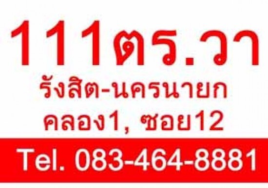 เสนอขายที่ดินเปล่า เนื้อที่111ตร.วา คลอง1 (สะพานแดง) รังสิต-นครนายก