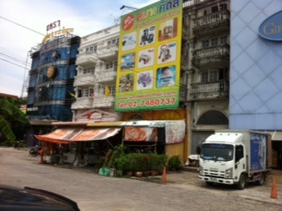 เลขที่ 99/34-35 ป้ายโฆษณาสีเขียวด้านหน้า
