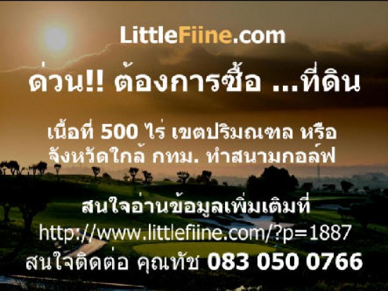 ต้องการซื้อที่ดิน เขตปริมณฑล เนื้อที่ 500 ไร่ ทำสนามกอล์ฟ