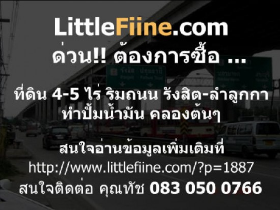 ต้องการซื้อที่ดิน ต้องการซื้อที่ดิน ติดถนนรังสิต ลำลูกกา เนื้อที่ 4-5 ไร่ ทำปั้มน้ำมัน