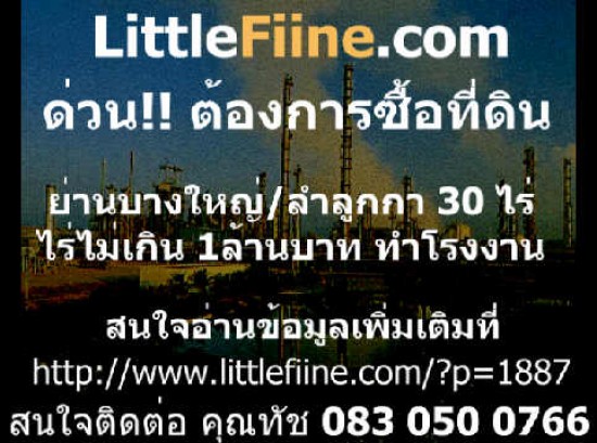 ต้องการซื้อที่ดิน บางใหญ่ หรือ ลำลูกกา พื้นที่สีม่วง เนื้อที่ 30 ไร่ ราคาไม่เกินไร่ล่ะ 1ล้านบาท ทำโรงงาน
