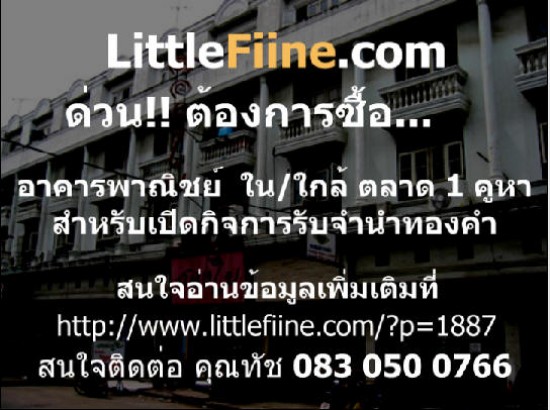 ต้องการซื้อ อาคารพาณิชย์ในหรือใกล้ตลาด 1 คูหา สำหรับเปิดกิจการรับจำนำทองคำ