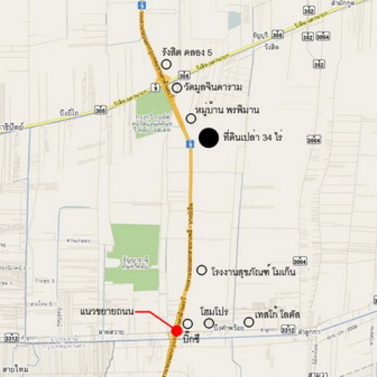 ขายด่วน ขายที่ดินเปล่า 34 ไร่ ติดถนนคู่ขนานมอเตอร์เวย์ สาย 9 ขาเข้าเมือง เป็นเส้นทางสัญจรเลี่ยงรถติดบริเวณถนนวงแหวนโดยผ่านวัดมูลจินดา หน้ากว้างที่ดินติดถนน 120 เมตร ลึก 450 เมตร อยู่ระหว่างถนนรังสิต-นครนายก คลอง 5 และลำลูกกา อยู่ระหว่างขยายปากทางเข้าเป็