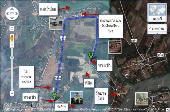 เข้าทางตรงข้ามโรงพยาบาลบางไทร หรือ ไปเข้าทางผ่านอำเภอบางไทรผ่านโรงเรียนศรีบางไทร