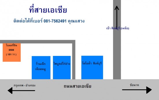 ร้อนเงินค่ะ ขายถูกว่าราคาประเมิณ ลดได้อีกเยอะขายที่ดินเปล่า อยู่ถนนสายเอเซีย ต.บางมัญ (หัวตลาด)อ.เมือง จ.สิงหบุรี ติดร้านเล็กเลือดหมูและไพบูลย์ไก่ย่าง 151 ตารางวา ราคา 480000บาท ต่อรองราคากันได้ค่ะ ลดได้อีกเยอะๆค่า เพราะเจ้าของที่ขายเอง โทร 083-89946