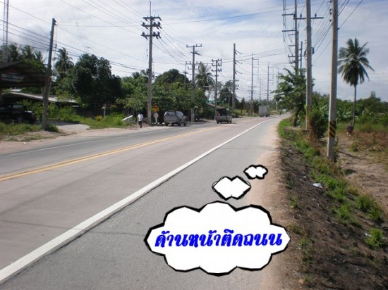 ที่ดินเปล่า รูปสี่เหลี่ยมผืนผ้า 3 ไร่ 3 งาน 47 ตรว. ติดถนนใหญ่