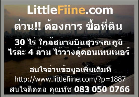 ต้องการซื้อ ที่ดิน ใกล้สนามบินสุวรรณภูมิ 30 ไร่ งบประมาณ ไร่ล่ะ 4 ล้าน ไว้ป็นที่วางตู้คอนเทนเนอร์ ทางเข้าให้รถพ่วงเข้าได้