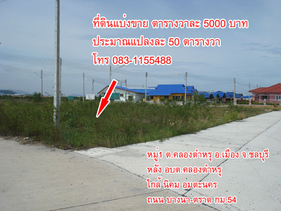หลัง อบต.คลองตำหรุ หมู่1 ต.คลองตำหรุ อ.เมือง จ.ชลบุรี เพียง 500 เมตร