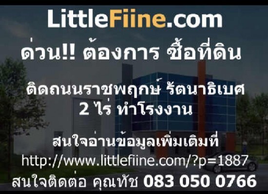 ต้องการซื้อ ที่ดิน ย่านถนนราชพฤกษ์ ช่วงรัตนาธิเบศ ติดถนน เนื้อที่ 2 ไร่ โรงงาน