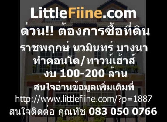 ต้องการซื้อ ที่ดิน นอกเมือง ราชพฤกษ์ นวมินทร์ บางนา คอนโด / Townhouse งบประมาณ 100-200 ล้าน