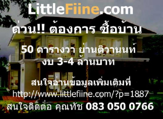 ต้องการซื้อ บ้านเดี่ยว เนื้อที่ 50 ตารางวา ย่านถนนติวานนท์ งบประมาณ 3-4 ล้าน