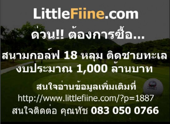 ต้องการซื้อ สนามกอล์ฟ ติดทะเล หรือใกล้ทะเล 18 หลุม งบประมาณ 1,000 ล้านบาท