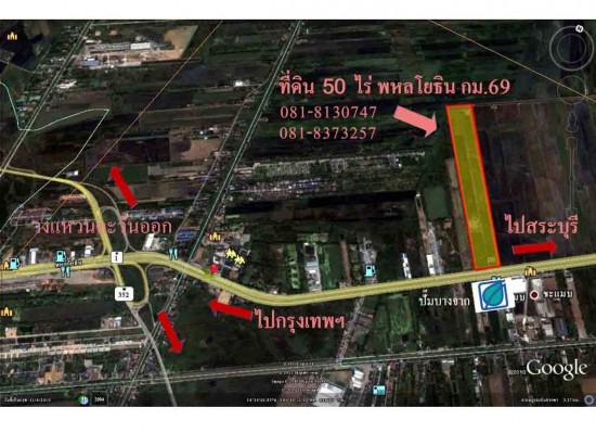 ขายที่ดิน อยุธยา วังน้อย ทำเลสวย ขนาด 50 ไร่ หน้าที่ติดถนนพหลโยธิน กม.69 ขาออก อยู่ใกล้วงแหวนตะวันออก 2 กิโลเมตร เหมาะสำหรับทำโรงงานอุตสาหกรรม โกดังสินค้า หมู่บ้านจัดสรร