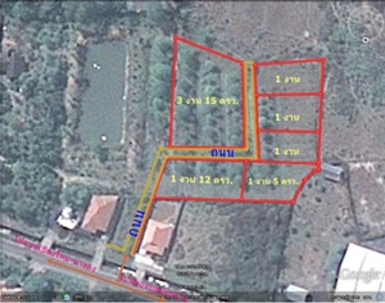 ที่ดินแบ่งขาย 6 แปลง เนื้อที่แปลงล่ะ 100 ตรว. มี 1 แปลง 300 ตรว.