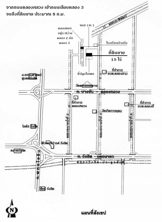 ขายที่ดิน 15 ไร่ อยู่คลองสาม ฝั่งวัดพระธรรมกาย ปทุมธานี