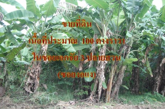 ายที่ดินเปล่า เนื้อที่ประมาณ 100 ตร.วา (รอออกโฉนดใหม่) อยู่ในซอยทรงพลซีแพค หรือซอยเอกชัย ปลายสวนหมู่ 3 หรือซอยบริษัทไทยน้ำทิพย์ จำกัด