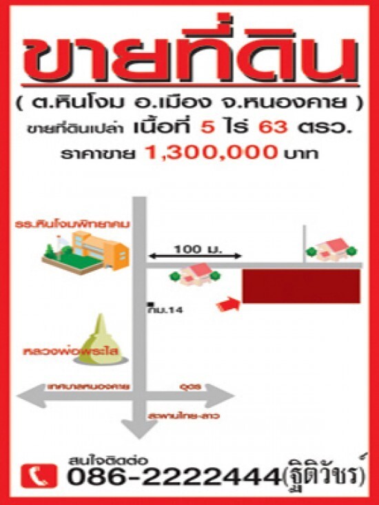 ขายที่ดินเปล่า ตรงข้าม รร.หินโงมพิทยาคม เนื้อที่ 5 ไร่ 63 ต ร ว. ต.หินโงม อ.เมือง จ.หนองคาย