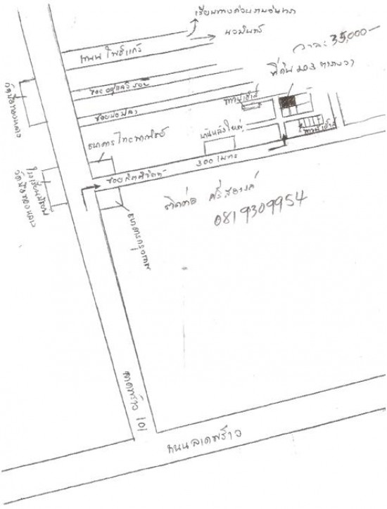 ที่ดิน 203 ตารางวา ตารางวาละ 35,000 บาท ติดต่อ ศรีสอางค์ 081 930 9954