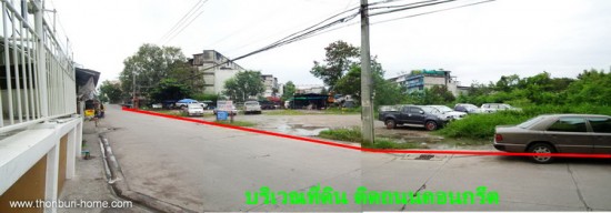 ขนาดที่ดิน หน้ากว้าง 35-60 เมตร (หน้ากว้างติดถนน 60 เมตร) และ ยาว (ลึก) 80-115 เมตร (คางหมู)