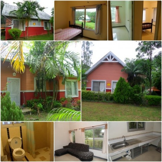 บ้านเดี่ยวชั้นเดียว 2 ห้องนอน 1 ห้องน้ำ(ห้องน้ำกว้าง-สบายไม่คับแคบ) 1 ห้องนั่งเล่น พร้อมซุ้มศาลาไม้สำหรับพักผ่อน มีบริเวณสนามหญ้ารอบบ้าน พื้นที่รวม 63 ตารางวา