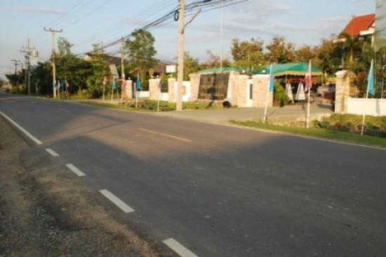 -เป็นที่มุมหน้ากว้างติดถนนสาธารณประโยชน์สองด้าน(ดูรูปที่ 3)ถนนหลักติด 38 เมตร ถนนรองติด 35 เมตร ที่เป็นรูปสี่เหลี่ยม เห็นวิวภูเขาสวย และถนนสาธารณประโยชน์นี้ต่อเชื่อมกับถนนลาดยางสันกำแพง-บ้านธิ อ.สันกำแพง มีการขยายตัวของเมืองอย่างต่อเนื่อง ตลอดเส้นทางมีการก่อสร้างหมู่บ้านจัดสรร บ้านตากอากาศ อาคารพาณิชย์ อย่างต่อเนื่อง