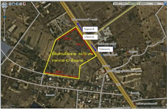 ขายที่ดิน 60 ไร่ เศษ (โฉนด) ริมถนนมิตรภาพ ย่านศูนย์ราชการใหม่ ตำบลหนองไผ่ ไร่ละ 680,000