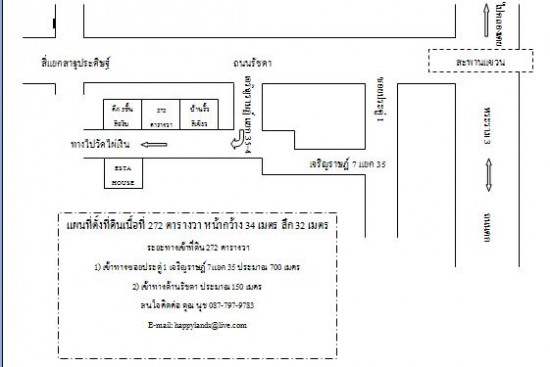 ขายที่ดิน 272 ตารางวา หน้ากว้าง 34เมตร ลึก 32เมตร