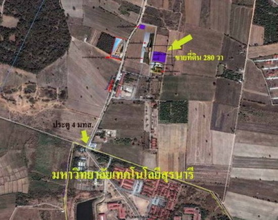 ที่ดินใกล้ มหาลัยเทคโนโลยีสุรนารี (มทส.) ประตู4 280 ตารางวา ที่ดินติดถนน 3 ด้าน ที่ดินห่างจาก มทส.ประตู 4. 300 เมตร ย่านนี้มีอาพาร์ทเม้นท์และบ้านเช่ามากมาย เป็นแหล่งที่นิสิตนักศึกษา,อาจาร์ยและบุคคลากรพักอาศัยจำนวนมาก. เหมาะสร้างหอพัก-อาพาร์ทเม้นท์
