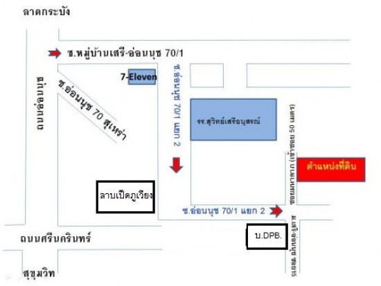 ขายที่ดินเปล่าราคาถูก ซ.อ่อนนุช 70 หมู่บ้านเสรี อยู่หลัง โรงเรียนสุวิทย์เสรีนุสรณ์