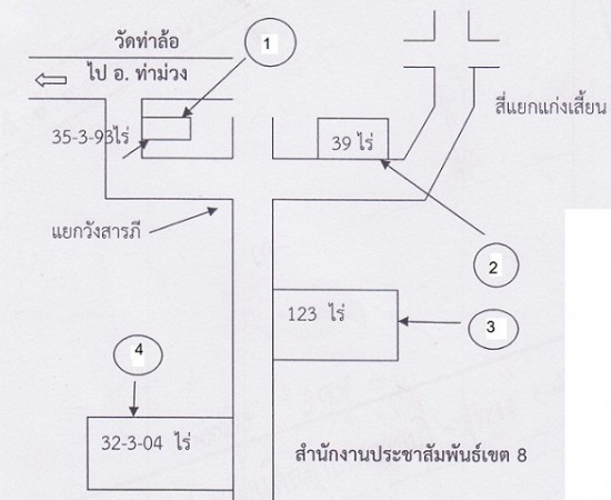 4. ตรงข้ามสำนักงานเขตประชาสัมพันธ์เขต 8 32-3-04 ไร่ ไร่ล่ะ 1,200,000 บาท