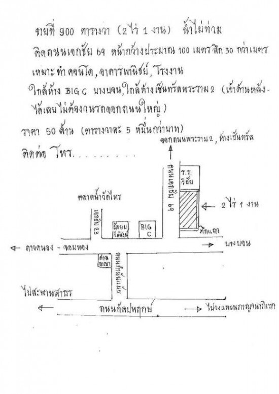 ขายที่ 900 ตารางวา (2 ไร่ 1 งาน) น้ำไม่ท่วม ติดถนนเอกชัย 69 หน้ากว้างกว่า 100 เมตร ลึก 30 กว่าเมตร เหมาะสำหรับทำคอนโด , อาคารพาณิชย์, โรงงาน ใกล้ห้างบิ๊กซีบางบอน ,ใกล้ห้างเซ็นทรัลพระราม 2 ราคา 50 ล้านบาท