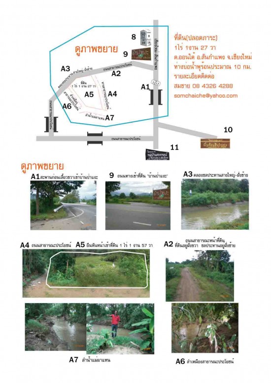 ฝั่งขวาติดลำเหมืองสาธารณะที่มีน้ำตลอดปี สภาพพื้นที่เป็นสภาพเดิมธรรมชาติมาก บรรยากาศดี เหมาะอย่างยิ่งที่จะปลูกสตอเบอรรี่่หรือทำบ้านพักตากอากาศ
