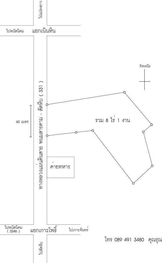 ขายที่ดิน 8 ไร่ ติดถนน 331 โทร 089 491 3480 ราคาไม่แพง