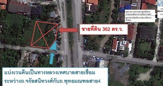 ขายที่ริมถนนพุทธมณฑลสาย1 ติดถนนพัฒนา(เชื่อมระหว่างจรัญกับสาย4) เนื้อที่ 362 ตร.ว