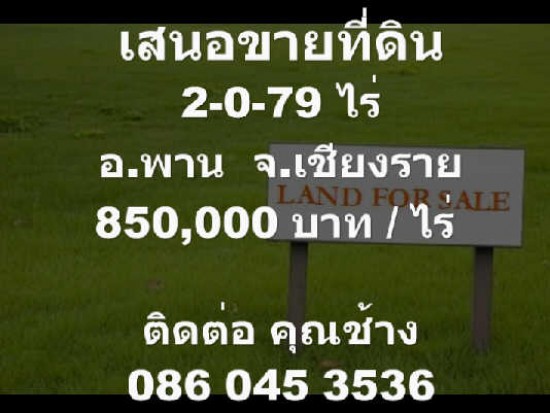 [เสนอขายที่ดิน][อ.พาน จ.เชียงราย][2-0-79 ไร่่][850,000 บาท/ไร่]