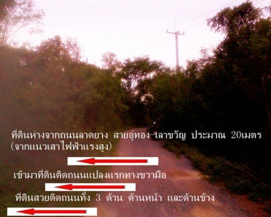 ที่ดินห่างจากถนนใหญ่ทางหลวงหมายเลข 3472 (สายอู่ทอง-เลาขวัญ) ประมาณ 20 เมตร