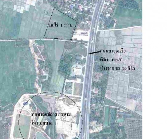 ขายที่ดิน 10 ไร่ ทำเลดี รองรับความเจริญในอนาคต ติด ถนน สายเอเชีย ติดเทศบาลแม่ลาว ห่างจากตัวเมืองเชียงราย เพียง 20 กิโลเมตร เหมาะสำหรับ จัดสรร สร้างบ้านหนีน้ำท่วม หรือเกร็งกำไรอนาคต เพียง 4.1 ล้านเท่านั้น ด่วน ติดต่อได้ที่ เบอร์ 0831231254 0816967460