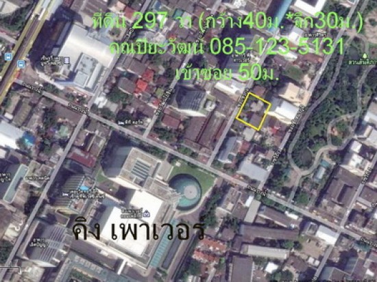 ขายที่ดิน 297 วา ซอยรางน้ำ ตรงข้ามคิงเพาเวอร์ 400,000บาท/วา ปิยะวัฒน์ 085-123-5131