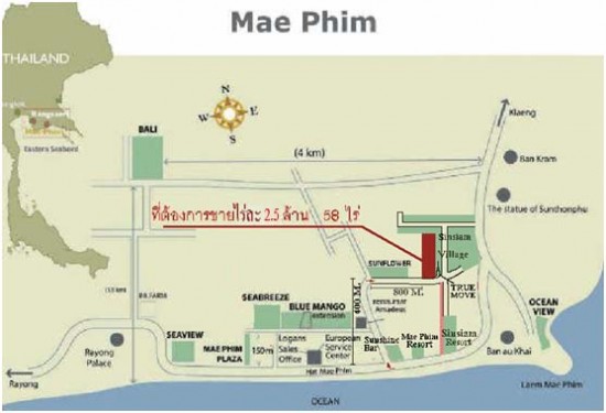 ที่ตั้ง: สามารถเข้าได้สองทางบนทางหลวง 3145 จากทางแหลมแม่พิมพ์ จะอยู่ห่างจากตัวเมืองระยองประมาณ 48 กิโลเมตร และอีกด้านจะอยู่ห่างจากอำเภอแกลงประมาณ 18 กิโลเมตร บนถนนสุขาภิบาลสุนทรภู่ พื้นที่ติดกับสินสยาม วิลเลจ (ซอยด้านหลังสินสยามรีสอร์ท) เข้าถนนเรียบหาดแม่พิมพ์จากปากซอย (ด้านขวามือเป็นร้าน SUNSHINE BAR ) เข้าไปอีก 1.2 กิโลเมตร บนพื้นที่มีไม้ใหญ่เช่นไม้เต็ง และไม้ป่าธรรมชาติ เหมาะสำหรับทำคอนโดมิเนียม บ้านพัก รีสอร์ท บังกะโล โครงการวิลล่า