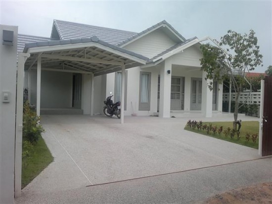Newly built modern design single house for sale, 15 minutes from Lamai Beach. 2 bedrooms, 2 bathrooms, A/C, bath tub, kitchen, living room, roofed parking and garden. Ready to move in.