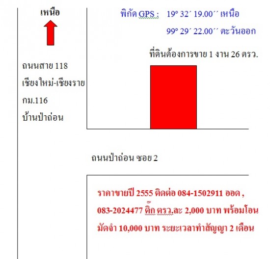 ขายที่ดิน 126 ตรว. ละ 2000 พร้อมโอน บ้านป่าถ่อน อ.ท่าก๊อ จ.เชียงใหม่ 0841502911(ออด)