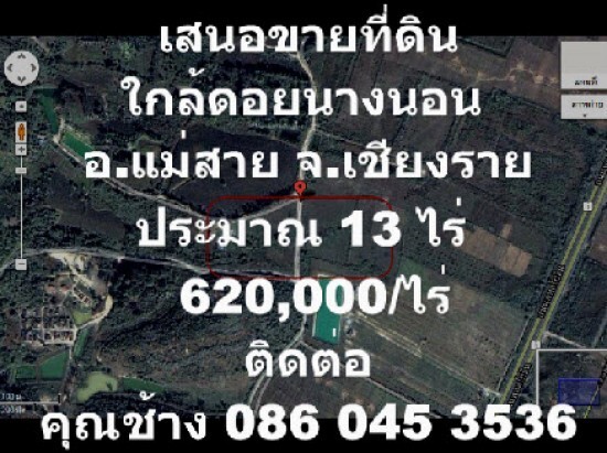 [เสนอขายที่ดิน][ ใกล้ดอยนางนอน ห้วยไคร้ ซอย 5 อ.แม่สาย จ.เชียงราย ][ประมาณ13 ไร่][620,000 บาท/ไร่]