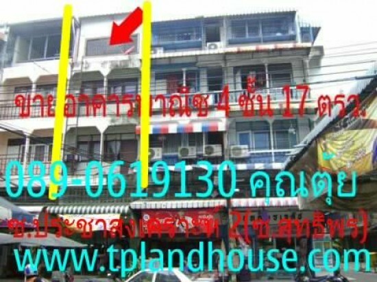 ขายอาคารพาณิชย์ 4 ชั้น 17 ตรว. ชั้นที่ 1 มี 1 ห้องโถง 1 ห้องน้ำ 1 ห้องครัวพื้นปูกระเบี้อง ต่อจากชั้นที่ 1 เป็นชั้นลอย ชั้นที่ 2 มี 1 ห้องนอน 1 ห้องน้ำพื้นปูหินขัด ชั้นที่ 3 มี 3 ห้องนอนพื้นปูหินขัด ชั้น 4 มี 1 ห้องโถง 1ห้องน้ำพื้นปูกระเบี้องชั้นลอยพื้นปูหินขัด ขายในราคา 5 ล้านบาท อาคารพาณิชตั้งอยู่ ซอยประชาสงเคราะห์ซอย 2(ซอยสุทธิพร)แขวงดินแดง เขตดินแดง กทม.การเดินทางสะดวกสามารถออกรัชดาซอย 4 ออกถนนดินแดงได้ออกถนนพหลโยธินได้ได้ใกล้ ห้างฟอร์จูน,โลตัส คาร์ฟู,จัสโก้,เซ็นทรัล สนใจติดต่อคุณธีรภัทร(ตุ้ย) โทร. 089-0619130 ดูรายละเอียดได้ที่เว็บไซต์ http://www.tplandhouse.com ศูนย์บริการรับฝากขาย บ้าน ที่ดิน ขายฝาก ซื้อ เช่า รับถมที่ดิน (ฟรีโฆษณา)