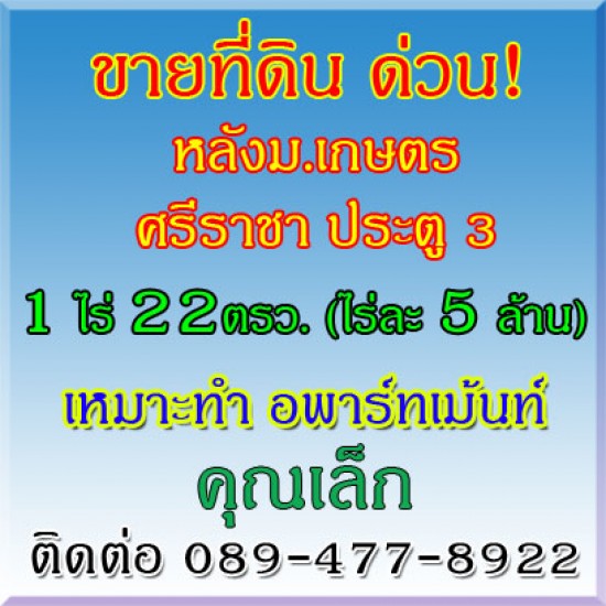 ไร่ละ 5 ล้าน อยู่หลังประตู 3 ม.เกษตร ศรีราชา