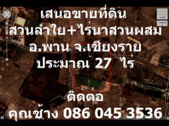 เสนอขายที่ดินสวนลำใยพร้อมเก็บ ต.สันติสุข อ.พาน จ.เชียงรายประมาณ 27 ไร่