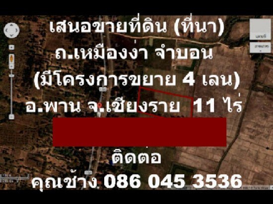 [เสนอขายที่ดิน (ที่นา)][ถนนเหมืองง่า-จำบอน (1190) อ.พาน จ.เชียงราย][11 ไร่]