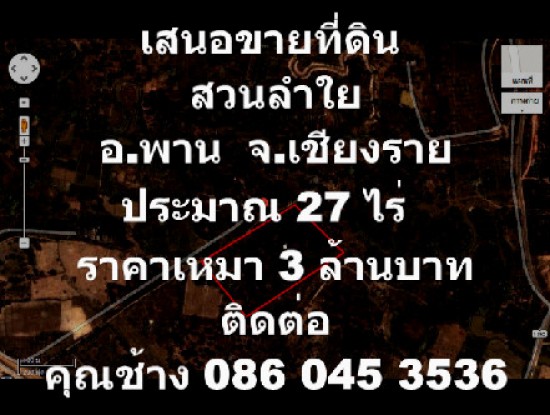 เสนอขายที่ดิน สวนลำใย อ.พาน จ.เชียงราย ประมาณ 27 ไร่ 3ล้านบาท NET