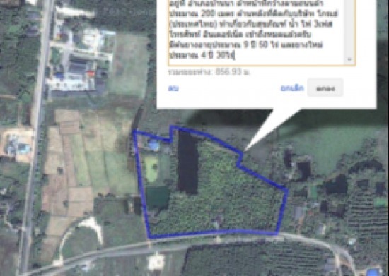ขายที่ดินไร่ยาง 89 ไร่ แบ่งเป็นยาง9ปี ประมาณ 60ไร่ ยาง 4ปี ประมาณ 29ไร่