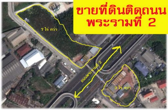 ขายที่ดินติดถนนพระรามที่ 2 เป็นที่ดินติดถนนพระรามที่ 2(ถนนตัดผ่านที่ดิน) ฝั่งช้าย 7 ไร่กว่า /ฝั่งขวา 3 ไร่ กว่า