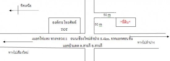 ต.สารภี อ.สารภี จ.เชียงใหม่ ห่างจากแยกดอนจั่น 8.4 กิโลเมตร ขับรถออกจากตัวเมืองไป เมื่อเจอ องค์การโทรศัพท์ TOT สำนักงานใหญ่(แยกป่าแดด) แล้วเลี้ยวซ้ายเข้าไป 50 เมตร เจอซอยเลี้ยวขวาไปอีก 50 เมตร จะเจอที่ดินที่ล้อมรั้วราคา 1.5 ล้านบาท